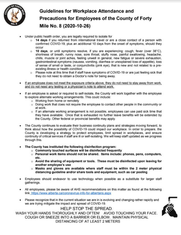 With new confirmed cases of COVID in our region we want to remind everyone to follow the physical distancing and personal hygiene guidelines. Masks are still available if you haven’t picked them up yet!
