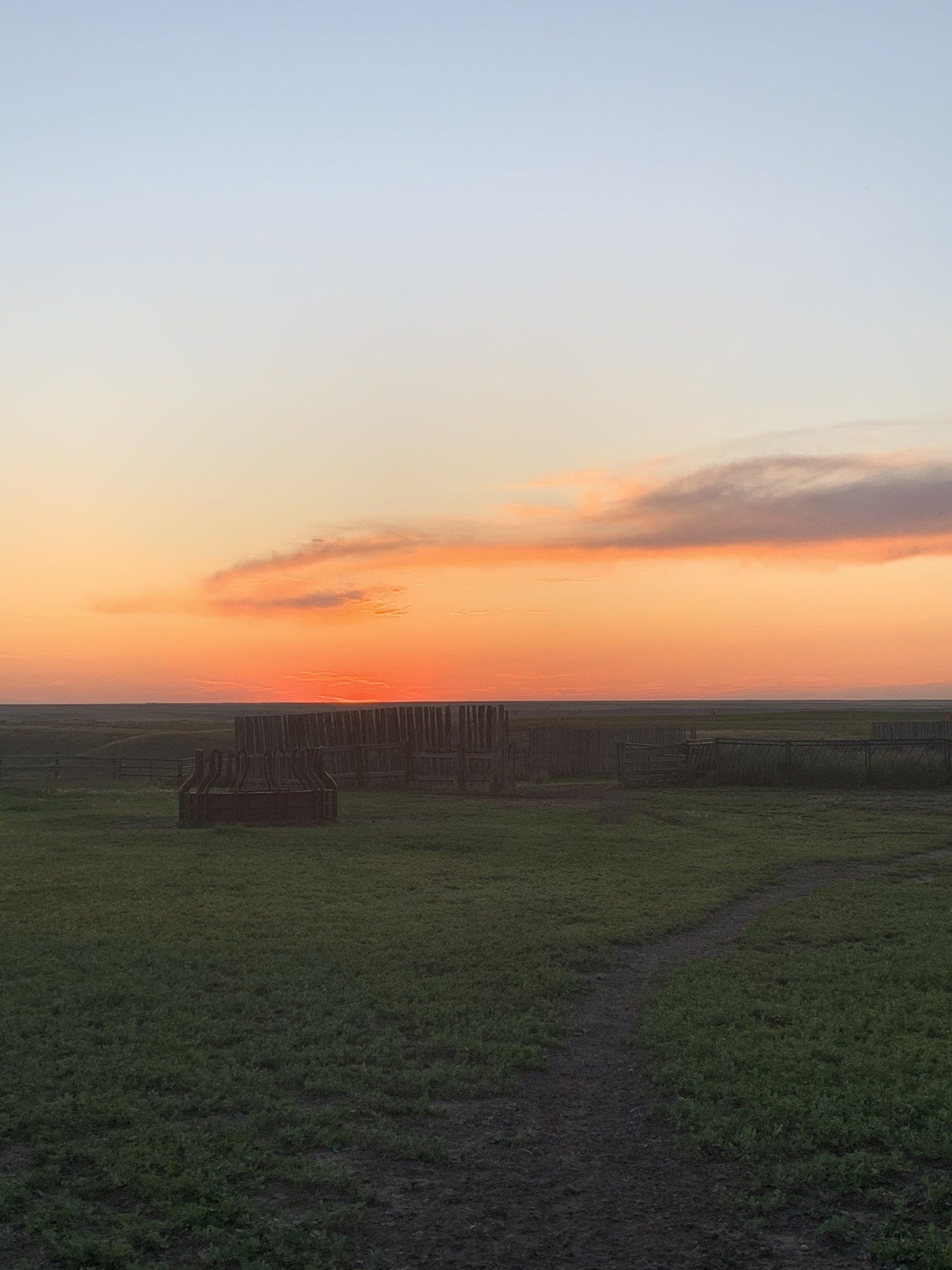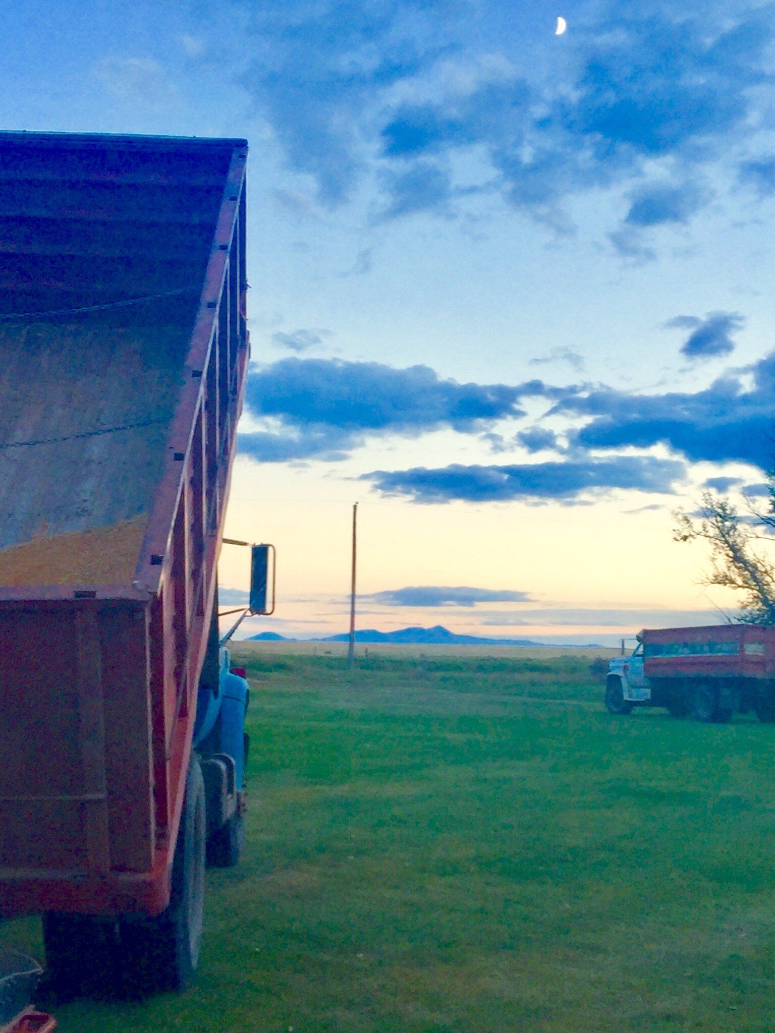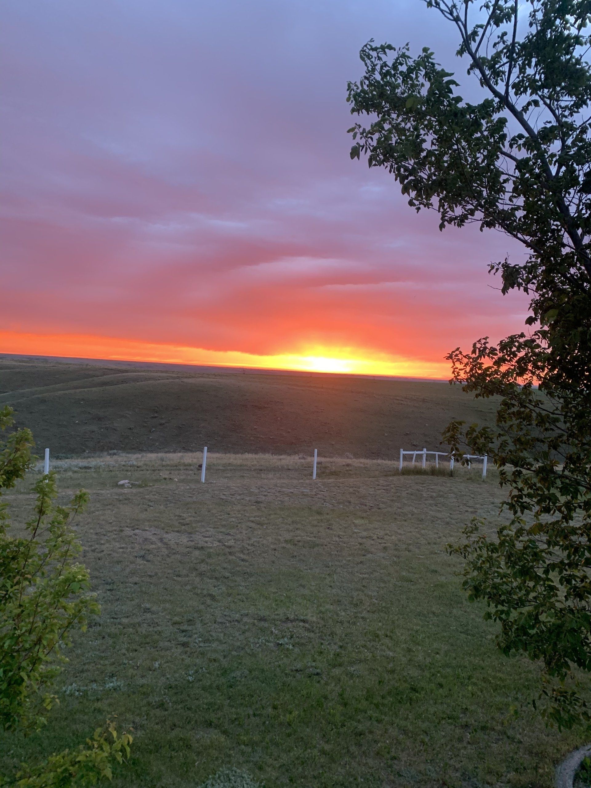 Sunset near the Warner county line showing the sweetgrass Hills.