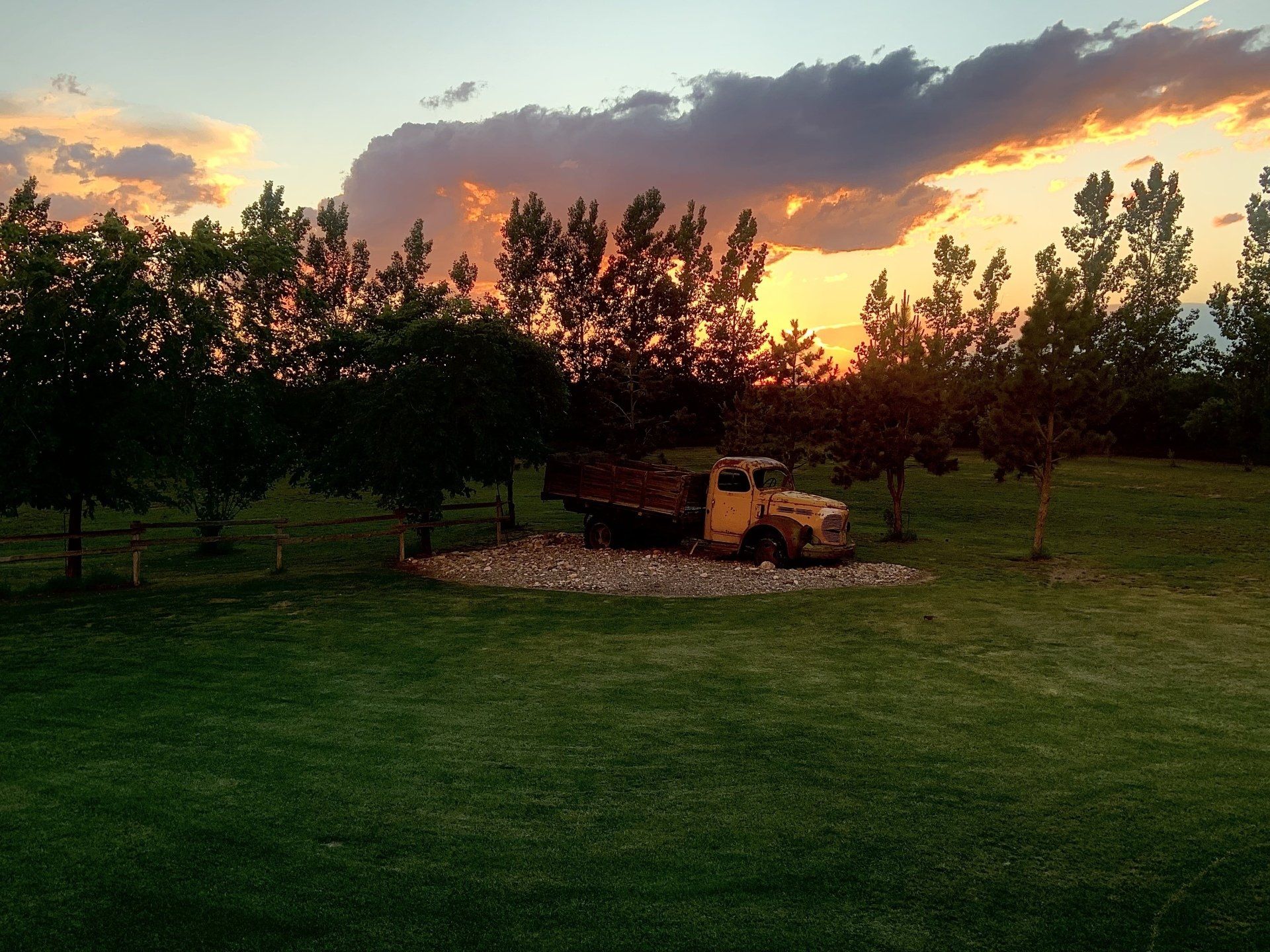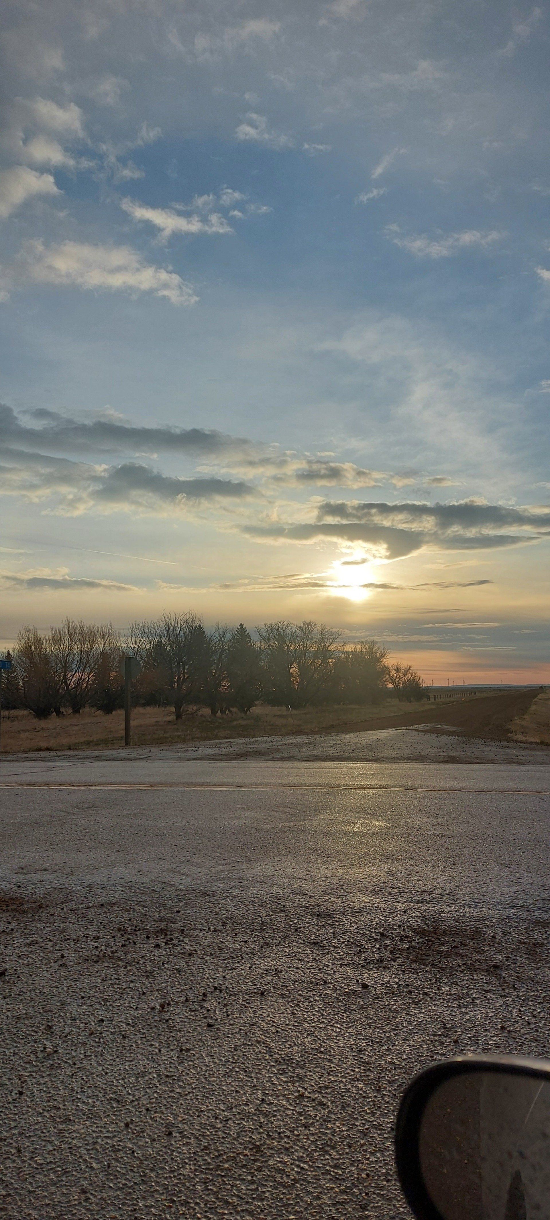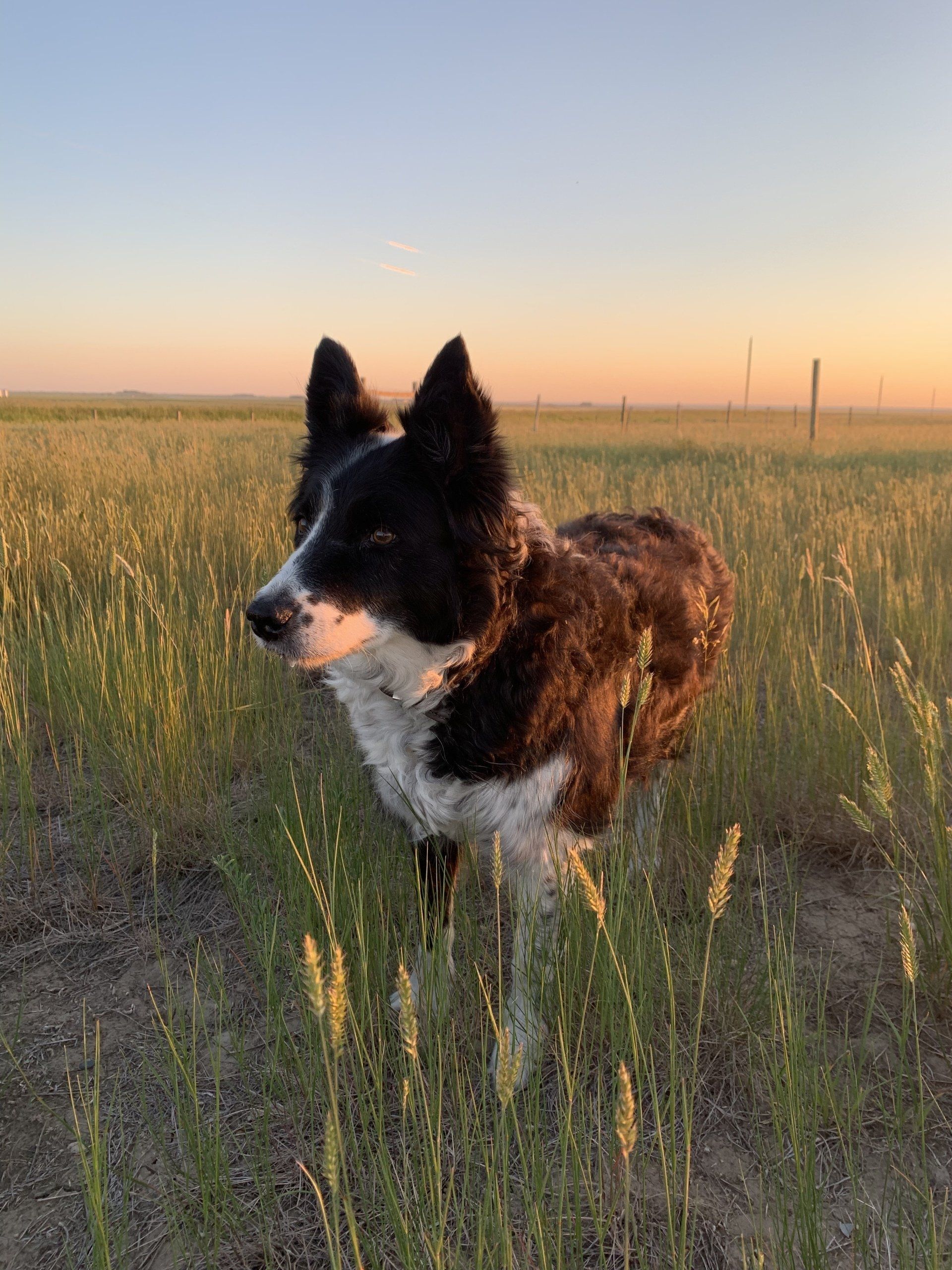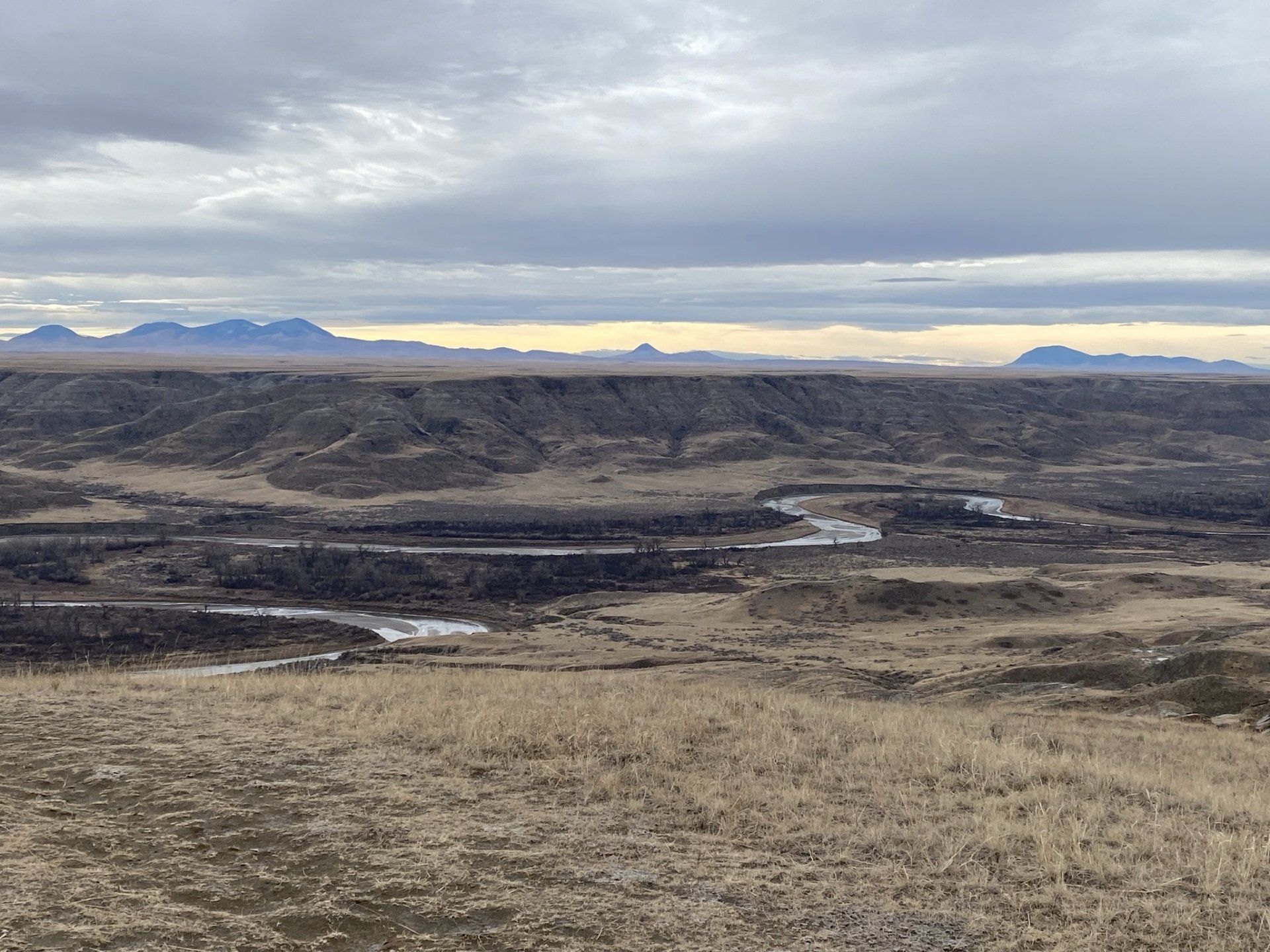 Sunset near the Warner county line showing the sweetgrass Hills.