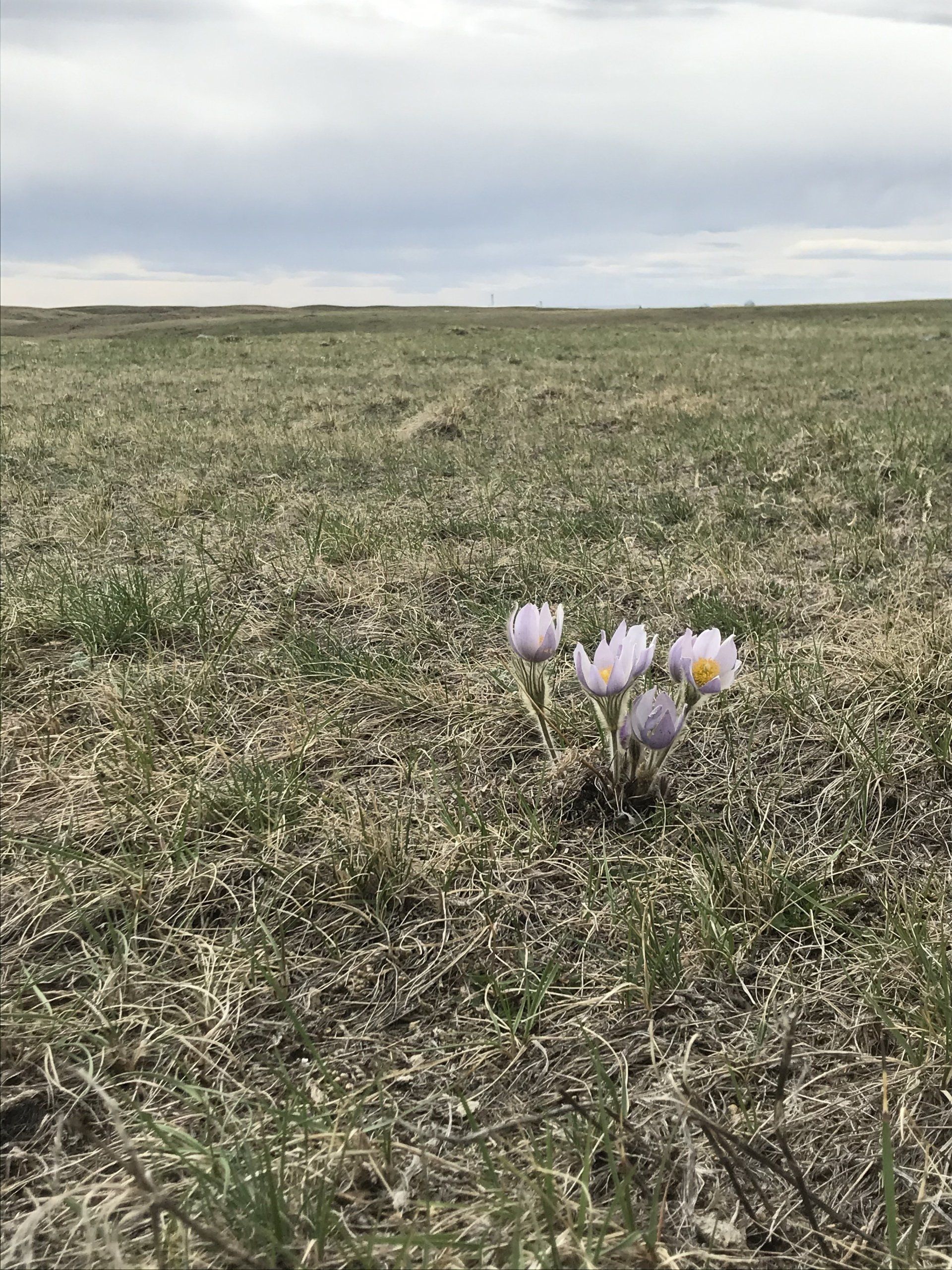 Flowering Crocus (iconic plant of native grasslands found on the Prairies) very early spring 2021.