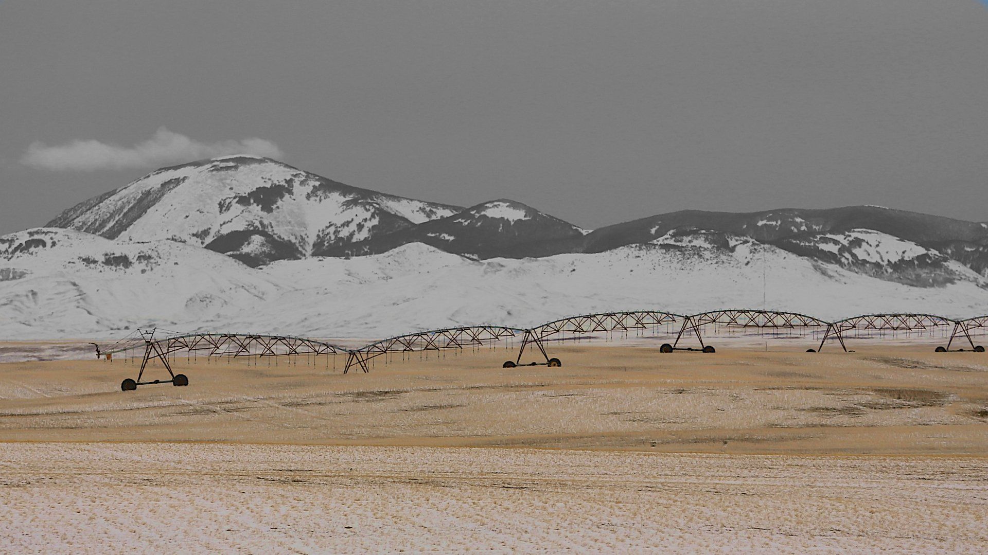 Oil pump Jack re-serviced to be a water pump on Hirche Farms south of Foremost.