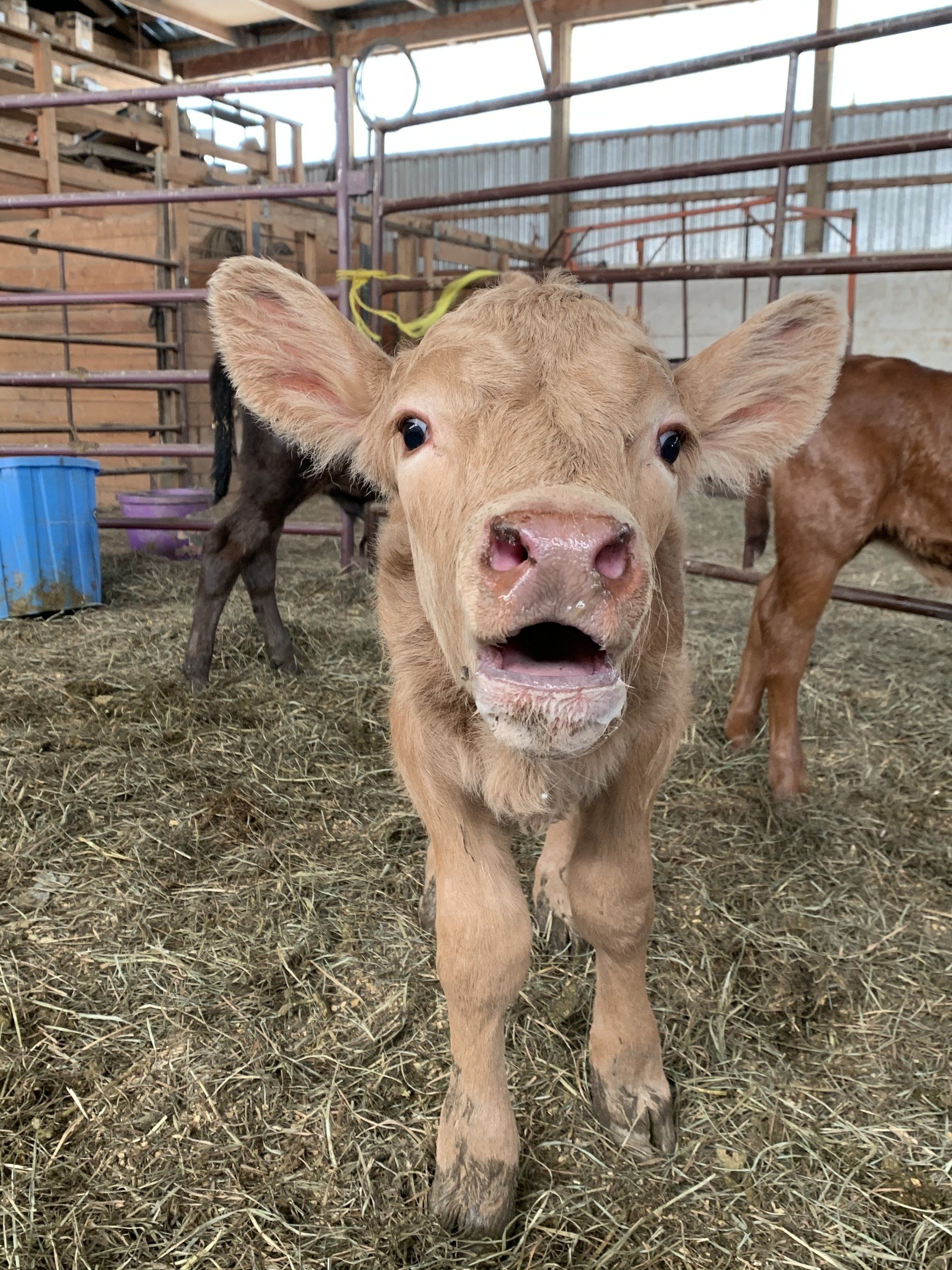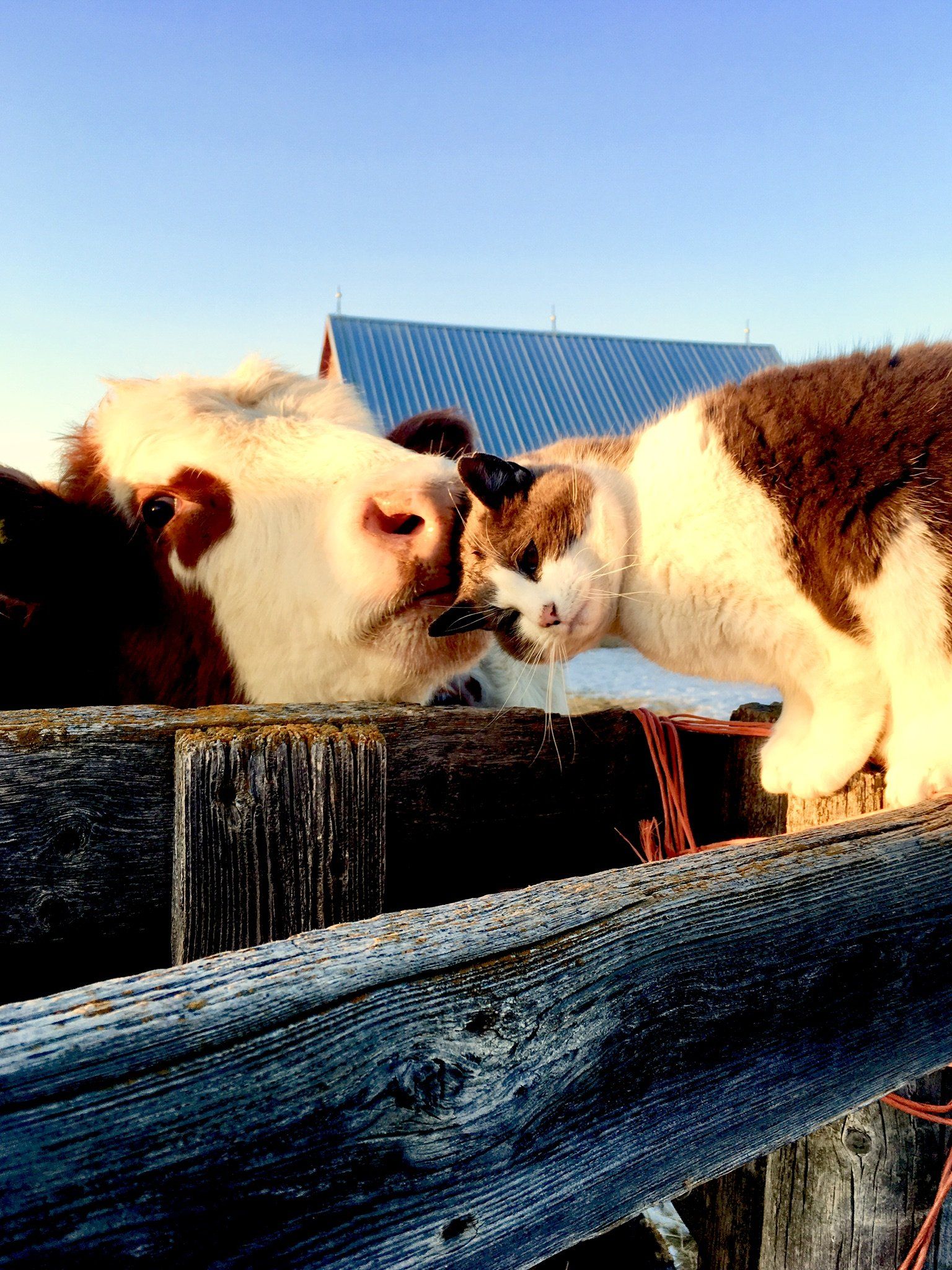 Yearling in the barnyard. The cat Princy gets affection daily :)