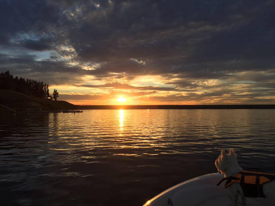 Returning to our dock from a evening boat cruise on 40 mile dam the sunset was so majestic and beautiful it even caught the eye of our beloved dog "Harley"